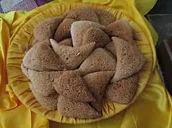 A variety of Acehnese food is cooked with curry or coconut milk, which is generally combined with meat such as buffalo, beef, goat meat, lamb, mutton, fish, or chicken.[5] Several Aceh dishes can trace its origin to India, such as roti canai which was derived from Indian flatbread.[6]