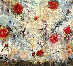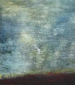 His work combines abstract tradition with a sensibility to the present moment that is the result of an affinity for Eastern spiritual teachings. His paintings have lush surfaces built up over the course of 3 to 5 years or more, and a luminous tension that evokes a deep emotional response in the viewer.[3]