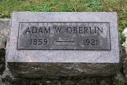 Adam W. Oberlin was born on May 13, 1859, at a farm in Plain Township, Stark County, Ohio, to Anna (or Nancy[1]) (née Wenger) and John Oberlin. His parents were from Lancaster County, Pennsylvania. His grandfather John Oberlin served in the War of 1812 and his great-grandfather Mike Oberlin served in the Revolutionary War.[2] At a young age, Oberlin learned to mine and haul coal at the coal mine on the family farm. Oberlin was educated at common schools and Avery Academy in Canton. He took a business course at Spencerian Business College in Cleveland.[1][2] In 1881, Oberlin bought a coal yard in Canton between 3rd and 4th streets.[3]