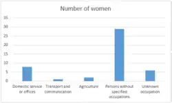 The census data for 1881 shows that agricultural work was the dominant occupation among males, with 32 men working on farms and with animals; other occupation areas for men included the professions, furniture design and lodging. Data for females shows that most occupations (29) were unspecified and another six were unknown.[3]