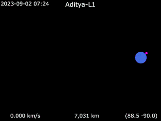 On 19 September 2023, Aditya-L1 performed its last maneuvre around Earth to escape its orbit and headed towards the Lagrange 1 point, taking at least four months to further reach its destination, 1.5 million kilometers away.[37]