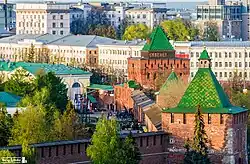The city of Nizhny Novgorod, Russia, is divided into two parts (Upper City and Lower City), eight districts, which are in turn subdivided into micro-districts, and municipal settlements.