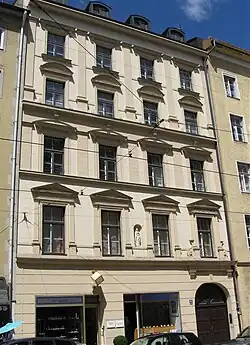 In 1929, Hitler moved into a luxury eight-room apartment at Prinzregentenplatz 16.[3] The apartment was on the second floor (according to European convention; third floor by American convention) and included two kitchens and two bathrooms. His publisher initially paid for it; a decade later Hitler paid for it outright.[2] Eventually, the whole building became property of the Nazi Party.