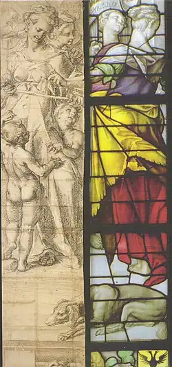 Left: drawing by Wtewael and Right: glass by De Vrije