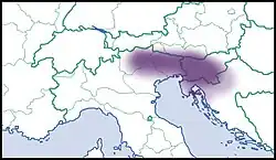 This species occurs in the Southeastern Alps: Italy, Southern Austria, Slovenia and Croatia.[1]