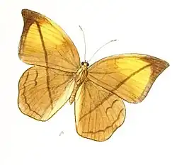 Aemona is a genus of nymphalid butterflies from Southeast Asia, they are large yellow-brown butterflies resembling dead leaves. The wing apex is acute.