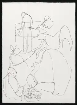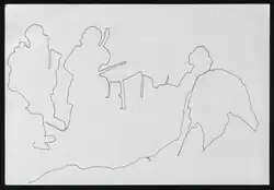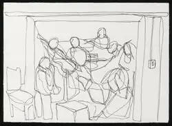 Jan van Esch, pen on paper drawing of Africa Open Improvising in Pieter Okkers House, Stellenbosch, 2023