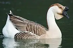 The African or African Goose is a breed of domestic goose. It is one of two domestic breeds that derive from the wild species Anser cygnoides, the other being the Chinese; all other domestic geese derive from Anser anser. Despite the name, it is not from Africa but is of Chinese origin, found in Teochew and Swatow of South China.[8] It is a large bird, among the heaviest of all goose breeds.