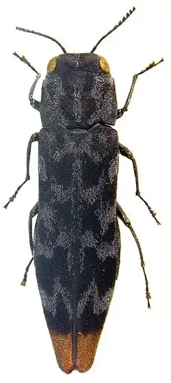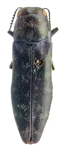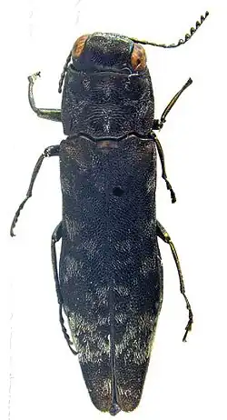 2. ^ Bellamy, C. L. "Genus Agrilus Curtis 1825". The World of Jewel Beetles (Insecta: Coleoptera: Buprestidae). The Coleopterists Society. Archived from the original on 15 February 2016. Retrieved 25 April 2018.