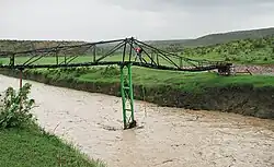 Evidence given by Italian aerial photographs of the catchment, taken in the 1930s show that 51% of the catchment was covered with woody vegetation (against 45% in 2014). This vegetation could slow down runoff and the runoff coefficient was smaller (8% in 1935 against 12% in 2014). As a consequence, discharges in the river were less and the river was narrower than today.[5] Up to the 1980s, there was strong pressure on the environment, and much vegetation disappeared.[6] This river had its greatest discharges and width in that period. The magnitude of floods in this river has however been decreased in recent years due to interventions in the catchment. On steep slopes, exclosures have been established; the dense vegetation largely contributes to enhanced infiltration, less flooding and better baseflow.[7] Physical conservation structures such as stone bunds[8][9] and check dams also intercept runoff.[10][11]