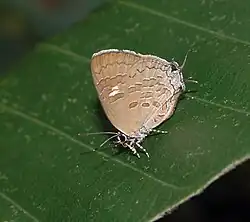 Ahmetia achaja is a species of butterfly in the family Lycaenidae. It belongs to the monotypic genus Ahmetia,[1] formerly known as Cowania (which actually refers to a tachina fly genus). It is sometimes assigned to the tribe Horagini, but it is more probably a member of the closely related Cheritrini. It is found in Thailand and Vietnam.[1]