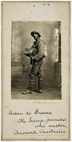 ![]() Aidan de Brune before beginning his walk around Australia in 1921 | |