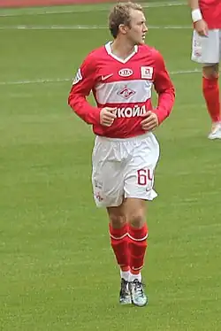 In August 2010, McGeady joined Russian side Spartak Moscow, signing a four-and-a-half-year contract.[28][29] The fee of £9.5 million made McGeady the most expensive player from Scottish football.[29] He made his league debut in September, a 2–1 win against Saturn.[30] He scored his first goal for Spartak in a 2–2 draw at home to Amkar later the same month.[31] In the last game of the season, McGeady was sent off for a late challenge on Marcin Kowalczyk in the derby against Dynamo Moscow.[32] He was included in the Russian Football Union's list of 33 top players, published in December 2010, which named McGeady the second-best right winger.[33]