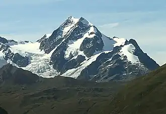 The Aiguille de Tré-la-Tête is a mountain in the south of the Mont Blanc massif. Its highest point, the central southeast pinnacle, is 3,930 metres (12,894 ft) above sea level and is located in Italy. Only the northwest pinnacle is situated on the border with France. It forms a chain with the Dômes de Miage.