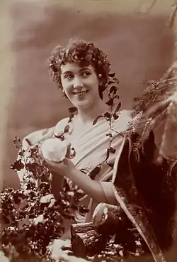 Campton appeared in a number of 'breeches roles',[8] including in the revue Entente Cordiale (1905) by Robert de Flers, in which she played a British Lord opposite Mlle Marie Marville as Madame de France at the Théâtre des Capucines. During 1904 to 1907 she was at the Moulin Rouge, in 1904 in the revue La Revue du Moulin with music by Gustave Goublier, and in 1907 in the operetta Le toreador. In 1906 she was in Une Revue au Palais-Royal, while in 1907 she acted in the comedy Souper d’Adieu at the Théâtre des Capucines. From 1907 to 1910 she was in the annual Folies Bergère revue by Flers. With Louis Maurel she sang 'Entrevue de Marienbad' at the Folies Bergère, which was recorded and which betrays her English accent while singing in French. In about 1908 Campton appeared in the revue Pomme d’amour while in 1911 she was at the Théâtre des Ambassadeurs. Between October 1911 and February 1912 she played alongside René Hervil the Théâtre des Capucines in Et voilà! by Robert Dieudonné and Gently! by Hugues Delorme. In the following year he would cast her as the lead in his Maud series of films.[8] During 1911 to 1913 Campton was at La Cigale in La revue sans culotte (1911); the comedy Miss Alice des P.T.T. by Tristan Bernard (1912-1913) and in En scene... mon president (1913), both with Maurice Claudius as her on-stage partner. In 1913 she performed in revues at the Théâtre Marigny, including in La revue de Marigny by André Barde and Michel-Antoine Carré.[1] From 1912 to 1915 she was on film sets for the studio Urban-Eclipse in Paris where she created the title role in the Maud series under the direction of René Hervil. Maud was one of the few comic series of the time in France to stage a female main character.[8]