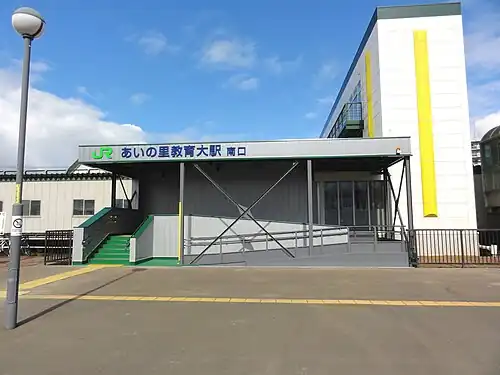 Ainosato-Kyōikudai Station (あいの里教育大駅, Ainosato-Kyōikudai-eki) is a railway station on the Sasshō Line in Kita-ku, Sapporo, Hokkaido, Japan, operated by the Hokkaido Railway Company (JR Hokkaido). The station is numbered G10.[1]