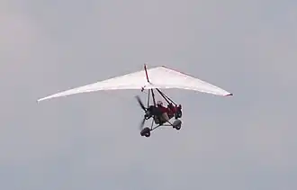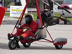 Racer carriage equipped with the Fun 14 wing. This wing provides docile handling and ease of rigging. Standard empty weight of 247 lb (112 kg) when equipped with the Rotax 447 engine.[1][3][4][5]