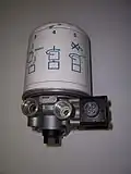 The supply system compresses, stores and supplies high-pressure air to the control system as well as to additional air operated auxiliary truck systems (gearbox shift control, clutch pedal air assistance servo, etc.). The air compressor draws filtered air from the atmosphere and compresses it, storing the compressed air in high-pressure reservoirs.[4] Most heavy vehicles have a gauge within the driver's view, indicating the availability of air pressure for safe vehicle operation, often including warning tones or lights. A mechanical "wig wag" that automatically drops down into the driver's field of vision when the pressure drops below a certain point is also common.