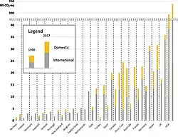- ^ a b c d e Gössling, Stefan; Humpe, Andreas (1 November 2020). "The global scale, distribution and growth of aviation: Implications for climate change". Global Environmental Change. 65: 102194. Bibcode:2020GEC....6502194G. doi:10.1016/j.gloenvcha.2020.102194. ISSN 0959-3780. PMC 9900393. PMID 36777089.