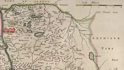 Blaeu's map[11] based on Pont's original[12] "Glasgow and the county of Lanark" map c.1596 depicting Ardry (Airdrie), Burnsyd (Burnfoot), Carnhil (Cairnhill), Gartly (Gartlea), and Ruchsols (Rochsoles) amongst others.Arms of Airdrie - The town's motto is the Latin word Vigilantibus (Being Watchful). It comes from Aitcheson of Rochsolloch[13]