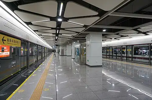 Airport North station (simplified Chinese: 机场北站; traditional Chinese: 機場北站; Jyutping: Gei1 Coeng4 Bak1 Zaam6) is a station on Line 11 and Line 20 of the Shenzhen Metro.[2][1] The station will serve the future Terminal T4 of Shenzhen Bao'an International Airport.
