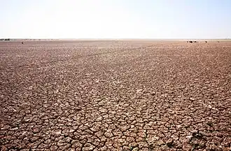 When filled with water, Aiyangiyang's mud soils provide a temporary lake that may reach six kilometers in diameter, and becomes an important landmark for people and wildlife in the surrounding region.[5]