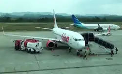 In 2024, Samarinda Airport handles 4,184 tonnes of cargo.[2] UK air cargo company, Menzies Aviation operates one air cargo terminal at the airport.[70][71][72] The 1,148-square-metre (12,360 sq ft) cargo terminal[73] has a capacity of 16 thousand tonnes a year.[74]