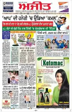 Ajit (Daily Ajit) is a Punjabi language daily newspaper published in Jalandhar, India.[1] The newspaper is run by Sadhu Singh Hamdard Trust[2] and has been publishing since 1941.[3] Veteran journalist and ex-Rajya Sabha member, Barjinder Singh Hamdard, is the current editor-in-chief. In 2007–08, it claimed a circulation of more than 333,000.[4]