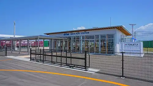 Although this station is basically a freight yard, East Japan Railway Company (JR East) conducts passenger business irregularly for cruise ship passengers calling at the Port of Akita.
