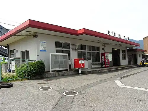 Akiyaguchi Station (安芸矢口駅, Akiyaguchi-eki) is a JR West Geibi Line station located in 1-chōme, Kuchita, Asakita-ku, Hiroshima, Hiroshima Prefecture, Japan. The "Aki" in the station title is from the former name of much of the current Hiroshima Prefecture.