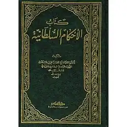 Al-Ahkam al-Sultaniyyah also mentioned as Ordinances of the Government is one of the most important books written on Islamic politics and Islamic jurisprudence of politics; it was written by the jurist Abu al-Hasan al-Mawardi.[1] Edmond Fagnan translated it into French. In addition to Al-Ahkam al-Sataniyah, Al-Mawardi also wrote authoritative books on jurisprudence, commentary, religious ethics, and literature. Al-Ahkam al-Sataniyah is a comprehensive and important book on Islamic governance and politics, consisting of twenty chapters.[2] It explains in detail all the areas of government such as the emirate, governor, state, police, army, judiciary, imamate, prayer, tahsil zakat, hajj, jizya and taxes, jagir, pastures, camps, criminal law and rules of accountability.[3] This book was published from Egypt.[4] It was published in Paris in 1895 with a French translation and commentary. His book was translated into Urdu by Maulvi Syed Muhammad Ibrahim and published by Nafis Academy Karachi and Law Library Lahore.