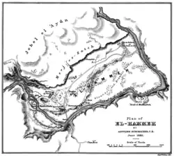 Al-Hamma (Arabic: الحمّة) was a Palestinian Arab village in the Tiberias Subdistrict, 12 kilometres (7.5 mi) southeast of Tiberias. It was situated on a narrow salient in the Yarmouk Valley bounded by Syria to the north and Transjordan to the south and east. Al-Hamma was one of the stations on the Jezreel Valley railway, linking the Hejaz Railway to Haifa.[4] It was depopulated twice, once in July 1949, and again between 1949 and 1956.