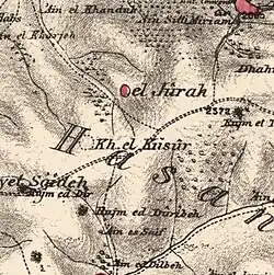 In 1883, the PEF's Survey of Western Palestine described El Jurah as "a small hamlet on the slope of the ridge, with olives below it, and a spring in the valley, about 3/4 mile to the north."[11]