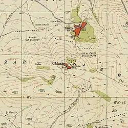 In the 1922 census of Palestine, conducted by the British Mandate authorities, al-Mazar had a population of 223, all Muslims,[11] increasing slightly in the 1931 census to 257, still all Muslims, in a total of 62 inhabited houses.[12] The village was home to Sheik Farhan al Sadi, a prominent leader in the 1936 Arab revolt in Palestine.[5] In 1937, at the age of 75, he was executed by the British authorities for his participation in the revolt.[13]