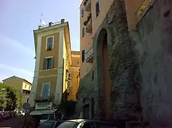 - Porta Romana or Porta di San Rocco is situated on the Via Appia towards Rome, flanked by the Doria palace and the church of San Rocco, the final appearance was given in the 18th century. All ornaments, coats of arms and the plaque on the door are now in the atrium of Palazzo Savelli. The door was razed in 1908 along with the nearby church to expand the Appian Way and pass the tramway Rome – Genzano of Tramvie the Castelli Romani.