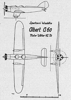 - ^ a b "Nový francouzský letounek Albert A-60, czech (New French aircraft Albert A-60)". Letectví (Aviation) (5): 188. May 1930.