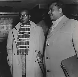 ![]() Delvaux (right) with Pierre Mombele at the Belgo-Congolese Round Table Conference | |