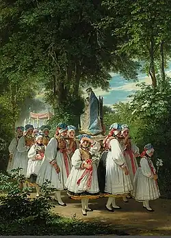 He was born at Freiburg, where he studied philosophy at the university. In 1827, he became the pupil of Peter von Cornelius and Julius Schnorr von Carolsfeld at the Munich Academy, and from 1840 studied under Franz Xaver Winterhalter in Paris, where he was awarded a gold medal in 1846. After traveling in France and England, he settled in Munich in 1852. Besides the "Triumph of Arminius" (Karlsruhe Gallery), and some altarpieces, his more important productions include: "The Seasons and the Divisions of the Day", and "Corpus Christi Procession of Peasant Women" (1860), both in the grand-ducal palace at Karlsruhe; and "Conradin Taking Farewell of his Mother, Elizabeth of Bavaria". He also painted many portraits of royalties (Queen Victoria, Maximilian I of Mexico, etc.), and for Linderhof Palace, Bavaria, a series of twenty celebrities – men and famous beauties – in the time of Louis XIV.