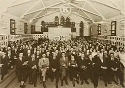 On 15 April 1901, the Deputy Premier of Queensland, Arthur Rutledge, laid the foundation stone for the "new" Albert Hall. Reverend Charles Edward James placed a time capsule (a bottle containing coins, lists of church officials and recent newspapers) in a cavity before the stone was laid.[2] On Saturday 28 September 1901, the Queensland Lieutenant-Governor, Samuel Griffith, officially opened the new hall.[3][4]