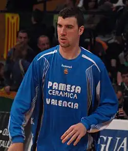 ![]() Miralles, in a warm-up with Pamesa Valencia | |