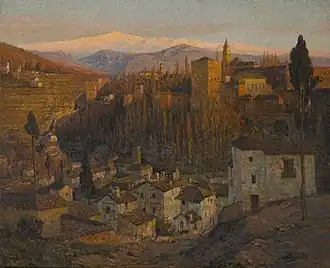 He moved from Exeter to Lelant, Cornwall in 1902, and travelled frequently to Spain, especially the South during the early 1900s and in the 1920s. He also visited Southern France and North Africa, and produced many paintings from these travels. He was also a very prolific local artist, and painted a very large number of landscapes and local scenes from Devon, Cornwall and, of course, Dorset, to which County he moved in the mid-1920s, living at Northbrook Road, Swanage for many years.