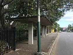 The second design was the pillbox with single-cantilevered roof slab, or "bus" type shelter, as it was called in the original Brisbane City Council list. These were designed so that the three brick blast walls could be removed after the war, leaving a concrete back wall and five brick piers at the front. Again, entrances were at each end of the front wall. Of the 19 "bus" types listed only two survive, at Newmarket and Newstead.[1]