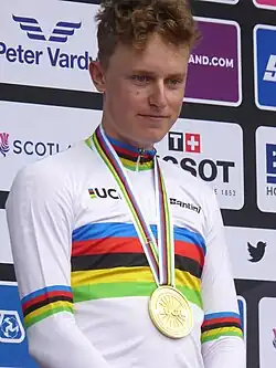 Albert Withen Philipsen (born 3 September 2006) is a Danish cyclist, who competes in road racing, cyclo-cross and mountain biking.[2] In 2023, he won the junior world road race and cross-country championships.[3] This made him the youngest rider ever to win the junior world road race title.[4] In December 2023, he signed a four-year contract with UCI WorldTeam Lidl–Trek beginning in 2025.[5]