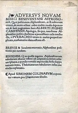 - "Apologia adversus novam Marci Beneventani astronomiam" (Paris, 1522);