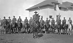The Alberta Provincial Police (APP) was the provincial police service for the province of Alberta, Canada, from 1917 to 1932. The APP was formed as a result of the Royal North-West Mounted Police (RNWMP) leaving the prairie provinces during the First World War due to a lack of sufficient resources in light of its increased responsibilities for national security and reluctance to again enforce Prohibition law recently put into effect by the Alberta government after its experience doing so during territorial times.[1] The RNWMP was replaced by the newly created Alberta Provincial Police on March 1, 1917, which remained responsible for provincial policing until 1932, when it was eliminated as a cost-cutting measure during the Great Depression.[2] The APP was known for its tumultuous beginning, battles against rum-runners and bootleggers during prohibition in Canada and the United States, as well as its remarkable efficiency and professionalism which endeared the force to Albertans.