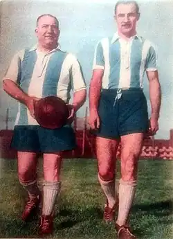 Marcovecchio (left) with Mario Boyé in a seniors match in 1949