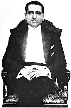 In 1911 he was elected deputy for the province of Andahuaylas[1] and re-elected in 1913.[2] He was a supporter of President Augusto B. Leguía, then in his first government. When the coup d'état of February 4, 1914 against Guillermo Billinghurst took place, he ardently defended the right to presidential succession of the first vice president Roberto Leguía (Augusto's brother). Congress was not dissolved but its sessions were frustrated on three occasions due to lack of quorum. In one of them, on March 21 of that same year, there were clashes and street shootings, resulting in Alberto Salomón himself being injured, who had himself carried on a stretcher to the parliamentary premises, struggling to enter. In 1919, when President Leguía began his eleventh anniversary, he was elected deputy for the province of Andahuaylas, department of Apurímac for the National Assembly of that year, which had the objective of issuing a new constitution, the Constitution of 1920, even reaching to be vice president of his chamber. He remained as an ordinary deputy until 1924.[3] He then was a senator for the department of Junín between 1924 and 1930.[4][5][6][7]