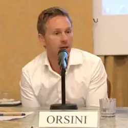 At LUISS University, Orsini is an associate professor and teaches general sociology and sociology of terrorism. From 2011 to 2022, he was also a research affiliate at the Center for International Studies at MIT, in the United States, where he was a Visiting Scholar at both the Department of Political Science and the Center for International Studies.[1][9][10] His research interests focus on "strategies for access to violent groups motivated by ideological hate".[1] He is the founder and director of LUISS University's Observatory on International Security and of the news website Sicurezza Internazionale.[1][11][12] He is a member of the scientific advisory board of the journal Studies in Conflict and Terrorism, of the Radicalisation Awareness Network of the Council of Europe, and of the "future scenarios" committee of the Stato maggiore della difesa of the Italian Armed Forces.[1]