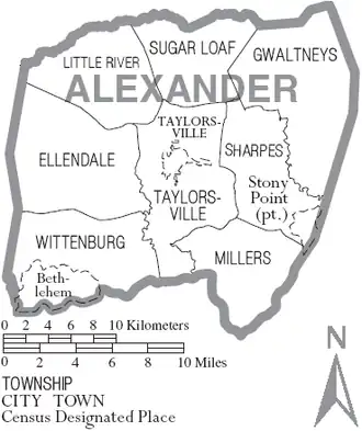 1. ^ "Alexander County (1847)". www.northcarolinahistory.org. Retrieved June 13, 2022.