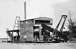 De Soto had heard several stories about gold deposits in the Sultan River area.[39][10][36] In August 1899, he went up the river with a group of people, and after several days, they stumbled upon large and seemingly expensive, though abandoned, mining camps, known to the locals as Horseshoe Bend. The Sultan River area was actively prospected in the later 1880s and early 1890s, but was abandoned at the time of the Alaskan gold rush start in 1896.[118][36][119][120]